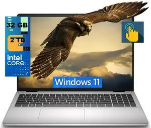 Dell 16 Laptop, 16" WUXGA (1920 x 1200) Touchscreen, Intel 10-core Core 7 150U Processor, Intel Graphics, 32GB DDR5  2TB PCIe SSD, Backlit Fingerprint WiFi6E, Windows 11 Home