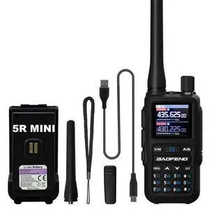 BAOFENG UV-5R Mini Two Way Radio BF-5R Mini Walkie Talkie Wireless Power Adjustable Tiny Size Frequency Copy 999 Channels Type-C Portable Ham Walkie Talkie (Black)