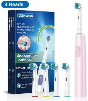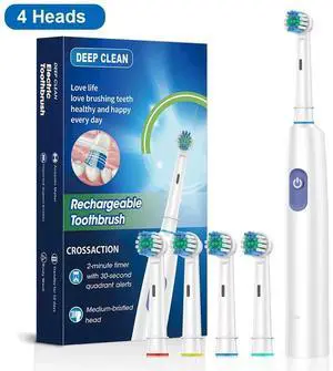 Electric Toothbrush Deep Clean Whitening Teeth for Adult White 4 Heads