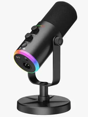 Podcast USB Microphone for PC/Mac/iPhone, Cardioid Condenser Mic with Noise Reduction, Tap-to-Mute, RGB Lighting, Zero Latency Monitoring, Volume Control for Gaming, Recording, YouTube