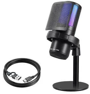 USB Microphone for PC Gaming: Condenser Microphone RGB for Gamer with Stand Mic - Recording Mic for Computer&Laptop with Qiuck Mute - Desk Podcast Mic for Podcast & Singing & Streaming & Youtube Black
