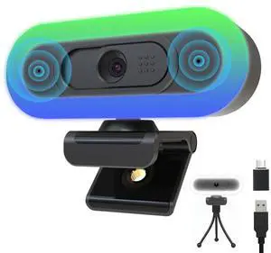 2K Webcam for PC with Microphone & Light & Privacy Cover, Web Camera for Desktop/Laptop/Monitor/Mac, Autofocus USB Computer Camera for Zoom/Skype/Teams/Video Calling/Meeting/Streaming