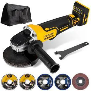Cordless Angle Grinder 4-1/2 inch Compatible with DeWalt 20V Battery, 10000 RPM Brushless Motor with 4 Variable Speeds, 5 PCS Blades for Cutting, Griding, Polishing (Battery NOT Included)
