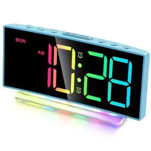 Loud Alarm Clock for Heavy Sleepers Adults,Kids,Teens,Digital Desk Clock with USB Port,Large Numbers,7 Color Night Light,Modern Electronic Plug in Simple Clock for Bedroom(Blue+Dynamic)