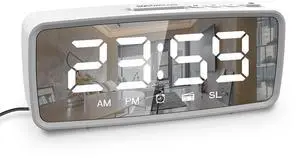 Small Digital Alarm Clock for Bedrooms, Loud for Heavy Sleepers Adults, Dimmable Plug in Electric Large Numbers Clock Battery Backup, Slim Clock for Table Office Modern Living Room (BB)