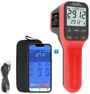 -58°F to 2912°F High Temp Infrared Thermometer Gun DS=30:1,Industrial Infrared Thermometer with Bluetooth USB Rechargeable,Adjustable Emissivity, for Kiln, Forge,HVAC