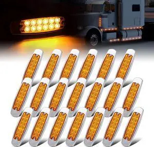 20 Pcs 12V DC 6.4 Inch Amber LED Side Marker Clearance Lamp Heavy Truck Lighting 12 Diodes Trailer Truck ATV SUV Coach Surface Mount Waterproof BB12
