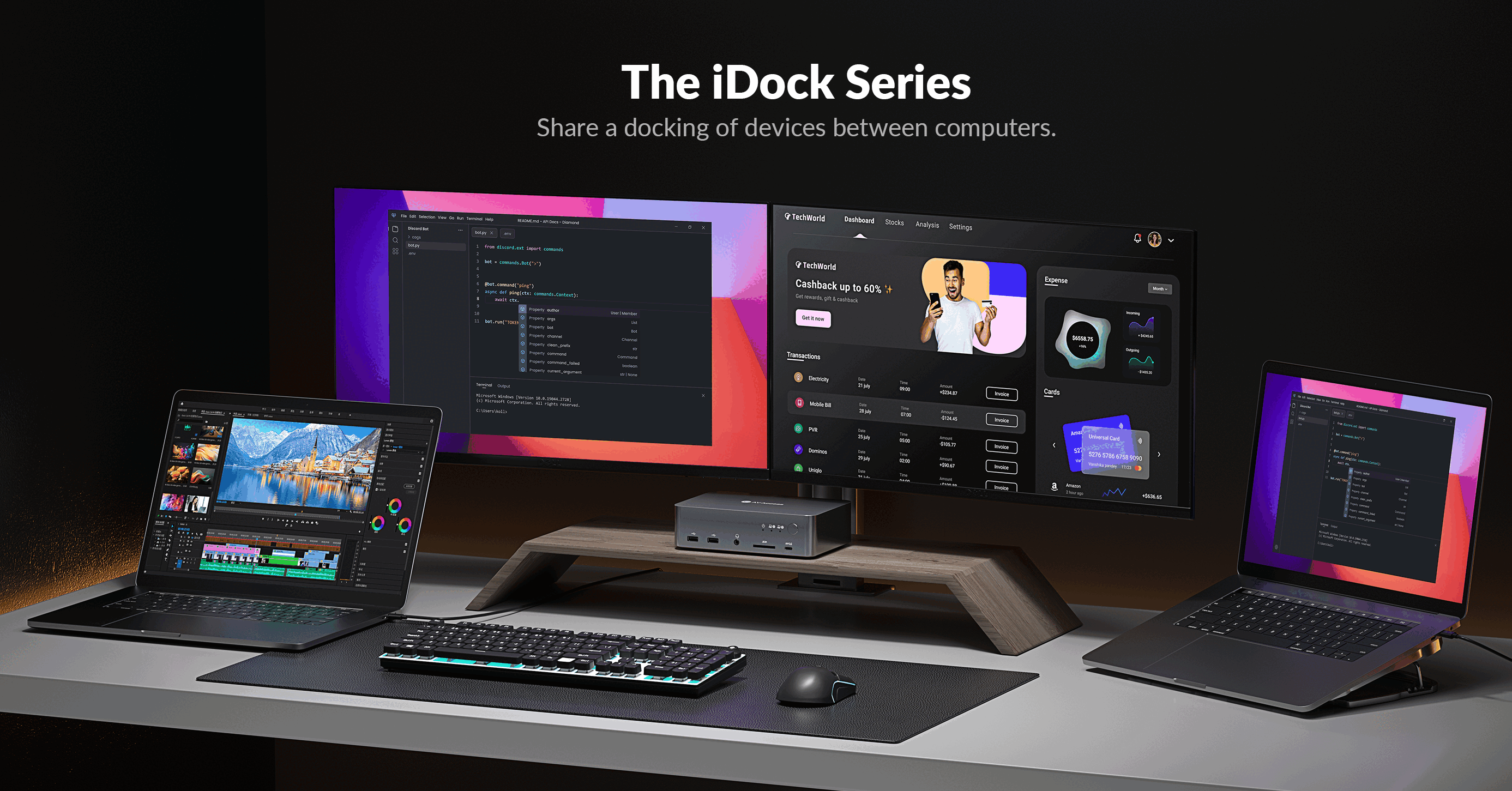 Side 2: 1x RJ45(10/100/1000Mbps); Display 1 (HDMI/DP++); Display 2 (HDMI/DP++); 2x USB-A 5Gbps; 1x USB-C Upstream (Host, PD100W); 1x DC IN(20V)