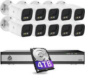 5MP 16CH Home Security Camera System, 10 Pcs Wired PoE IP Cameras Outdoor with Person/Vehicle/Face Detection, 4K 16CH NVR with 4TB HDD for 24/7 Recording, 2-Way Talk, Spotlight Siren, IP66 Wa