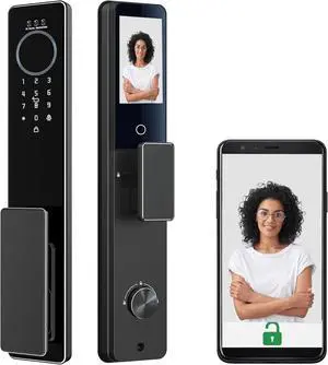 Smart Keyless Entry Door Lock, AL502 Security Camera Door Bell Deadbolt, Built-in WiFi, Support APP Control, Fingerprint, Alexa, Motion Detection, Video Record, BHMA, IP65, with Battery, Chime
