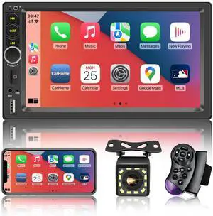 Upgrade Wireless 7" Double Din Car Stereo with Apple CarPlay Android Auto 178 * 102mm,Touchscreen Car Play Radio for Car,Screen for Bluetooth 5.0, Weatherproof Backup Camera,FM,AUX,Card Slot,USB,SWC