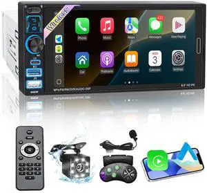 10.1" Double Din CarPlay Screen for Car, Wireless Apple CarPlay and Android Auto, Built-in 2+64GB, Bluetooth, GPS, Backup Camera, Voice Control, WiFi, FM, AM, with Free APK Download and Deletion