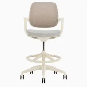 Laura Davidson Furniture SOHO II Ribbed Drafting Chair for Standing Desks, Standing Desk Chair - Ergonomically Designed, Commercial Grade Draft Height, Arm Rest & Cushion, Made of Faux Leather, White