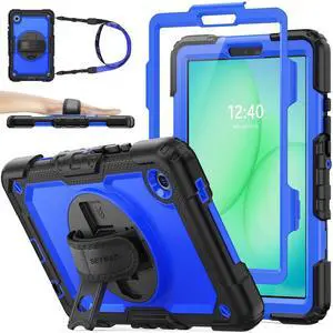 SEYMAC stock Case for Samsung Galaxy Tab A11 8.7'', Full-Body Drop Protection Case with Screen Protector Pencil Holder [360 Rotating Hand Strap] &Stand, Blue+Black