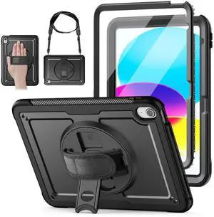 Nitupai Case for iPad 10th Generation 10.9 Inch 2022 / iPad A16 Case 11 Inch 2025 with Screen Protector 10th Gen Cover for Kids Pencil Holder 360 Rotating Stand Shoulder Strap, Black Black