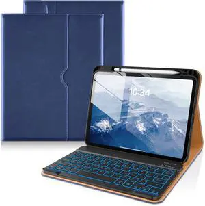 DTTO for iPad 11th (A16,2025)/ 10th Generation (10.9",2022) Case with Keyboard, 7 Colors Backlit Wireless Detachable Keyboard Premium Leather Folio Cover with Pencil Holder & Pocket, Navy Blue
