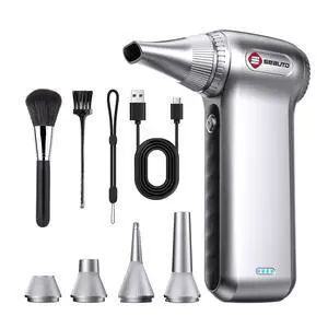 Compressed Air Duster -132000RPM Powerful & High Speed Portable Dust Blower, with 6000mAh Rechargeable & Reusable Battery. Mini Blower, Luxury & Durable Compressed Air Blower for PC, Car & Home