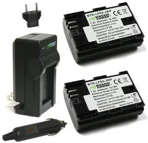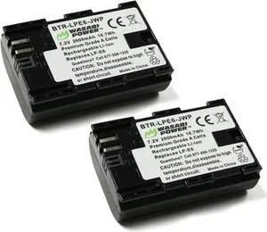 LP-E6, LP-E6N Battery (2-Pack) and Charger for Canon EOS 5D Mark II/III/IV, 5DS, 5DS R, 6D, 6D Mark II, 7D, 7D Mark II, 60D, 70D, 80D, 90D, R, R5, R6, Ra, XC10, XC15, BMPCC 4K, BMPCC 6K- Brand: Wasabi Power