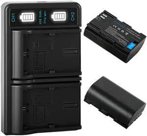 2850mAh LP-E6P LP-E6 LP-E6N LP-E6NH Battery 2-Pack and LED Dual Charger for Canon EOS R8, R7, R6, R5, R5 Mark II, R, 5D III IV, 5DS, 6D, 6D II, 7D, 80D, 90D- Brand: HP
