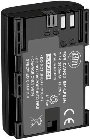 LP-E6N Battery for Canon EOS R, EOS R5, EOS 90D, EOS 60D, EOS 70D, EOS 80D, EOS 5D II, EOS 5D III, EOS 5D IV, EOS 5Ds, EOS 6D, EOS 6D II, EOS 7D, EOS 7D Mark II, C700, XC10, XC15 Cameras- Brand: BM Premium
