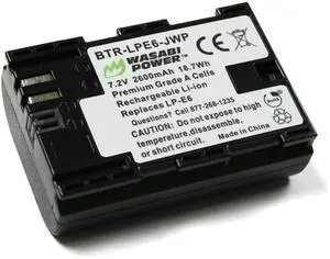 LP-E6, LP-E6N Battery for Canon EOS 5D Mark II/III/IV, 5DS, 5DS R, 6D, 6D Mark II, 7D, 7D Mark II, 70D, 80D, 90D, R, R5, R6, Ra, XC10, XC15, BMPCC 4K, BMPCC 6K- Brand: Wasabi Power
