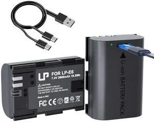 LP-E6 LP-E6N Battery and Charger Pack, 2-Pack 2600mAh Battery Compatible with Canon EOS 90D,80D,70D,60D,60DA,7D Mark II,7D,6D Mark II,6D,5D Mark IV,5D Mark III,5D Mark II,5DS,5DS R,R5,R6 Cameras