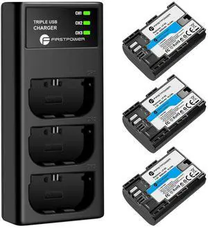 LP-E6 LP E6N Battery 3-Pack 2600mAh and Triple Slot Charger for Canon EOS 5D Mark II III IV, 5DS, 5DS R, 6D, 6D Mark II, 7D, 7D Mark II, 60D, 70D, 80D, 90D