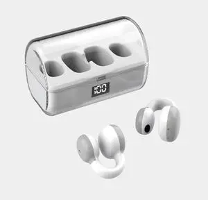 Open Ear Earbuds Wireless Bluetooth 5.3 Open Ear Clip Headphones with Microphone,IPX5 Waterproof Sport Earphones Bone Conduction Headphones 8H Single Use for Running,Sports,Cycling,Driving,White