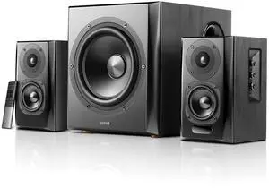 Features: 24 WATTS RMS POWER OUTPUT - Active bookshelf speaker system with 24W total power output with calibrated, flared bass reflex port in front CLASSIC WOOD FINISH - 100% wooden enclosures to minimize acoustic resonance, Magnetically shielded speakers CABLES INCLUDED - RCA and 3.5mm cables and speaker wire included. Universal 110V-240V