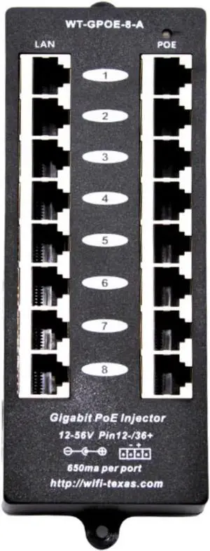 Features: • Hardened IP50-rated gigabit PoE+ injector