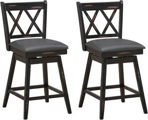 SlickBlue 2 Pieces 24 Inch Swivel Counter Height Barstool Set with Rubber Wood Legs