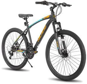 HILAND Mens and Womens Mountain Bike, 26 Inch 21 Speed Mountain Bicycle with Dual Disc Brake, Front Suspension Fork, High Carbon Steel Frame Urban Commuter Bike for Adults, Black Orange