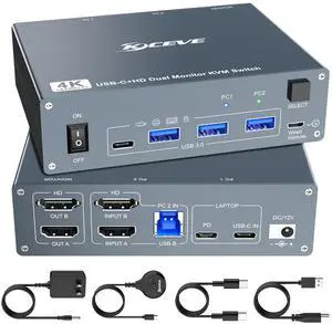 AV Access Docking Station KVM Switch 2 Monitors 2 Laptops, 4K KVM Switch Dual Monitor, 100W PD for Each PC, 1G Ethernet, EDID Emulation, Ideal for Home Office & Gaming(KD-E20)