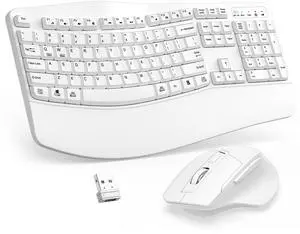 Wireless Keyboard Mouse Combo,  2.4GHz Slim Full Size Wireless Keyboard and Mouse Set with Number Pad and Nano Receiver for PC Laptop Windows, Quiet and Ergonomic (White)