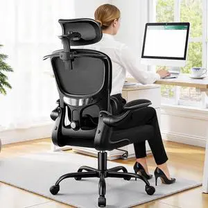 Flysky Mesh Office Chair, Ergonomic Computer Desk Chairs for Home Office - with Comfy/Comfortable Flip-up Arm Rests, Lumbar Support, Height Adjustable, 360 Degree Rolling Swivel (Black)