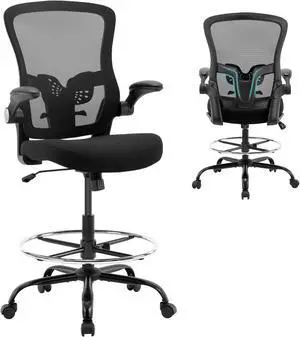 Drafting Chair,Tall Office Chair, Ergonomic Standing Desk Chair with Flip-up Armrests,Mid-Back Counter Height Computer Task Chair with Lumbar Support and Adjustable Footrest Ring,Black