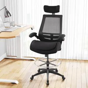 400lbs Ergonomic Drafting Tall Office Chair for Adjustable Standing Desk with Flip-Up Arms, Headrest (with Footring, Black)