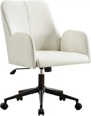 Furniliving Home Office Desk Chair, Ergonomic Leather Office Chair with Wheels, Comfortable Rolling Task Chair Adjustable Height, White
