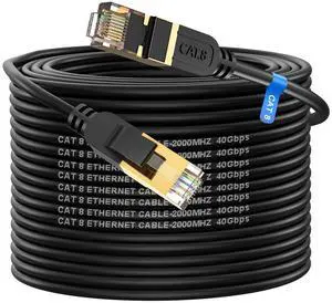 Nippon Labs Cat8 RJ45 10FT Ethernet Patch Internet Network LAN Cable, Indoor/Outdoor, 24AWG, Shielded Latest 40Gbps 2000Mhz, Weatherproof S/FTP for Router, PS4, PS5, Xbox, PoE, Switch, Modem (Black)Limited time offer, ends 01/20