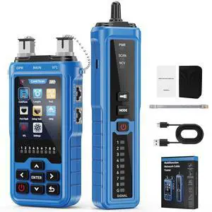 Network Cable Tester 8-in-1, RJ45 Ethernet Cable Tester with OPM,VFL,PoE, Cable Length Test, Port Flashing, Cat5 Cat6 Cat7 Fiber Tester & Wire Tr, Network Testing Tool