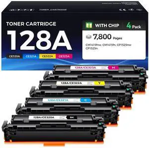 128A Toner Cartridge 4-Pack Black Cyan Yellow Magenta High Yield Replacement for 128A CE320A CE321A CE322A CE323A Compatible with HP LaserJet Pro Color MFP CM1415fn CM1415fnw CP1525nw CP1525n Printer