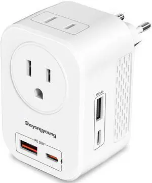 Shayangyoung 220V to 110V Voltage Converter US to Europe International Universal Travel Adapter,20W PD with 2 USB A 2 Type-C Port,Worldwide Power Converter Plug Combo US to Italy Spain Greece White-IN