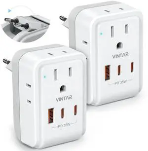 2 Pack European Plug Adapter USB C, TESSAN US to Europe Adapter 4 Outlets 3 USB Charger, Type C International Power Adaptor to Italy Spain France Portugal Iceland Germany, Europe Travel Essentials