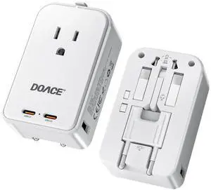 DOACE Pico Travel Adapter PD 45W, 5-Port Universal Power Adapter 1 AC, 2 USB C and 2 USB-A, International Plug Adaptor Worldwide for US to European UK Italy Spain New Zealand Over 200 Countries