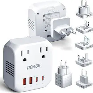 • Features: Global Adapters: This International European Travel Plug Adapter is a set of US/Europe/UK/Australia plugs in one, AC socket for worldwide use, suitable for more than 180 countries, in addition, this international plug adapter has 3 USB ports, 1 type-c port , to meet the different needs of global travel. It is an indispensable travel accessory that will become your best travel companion. Smart Fast Charging: (80% faster than ordinary chargers) & 1500W high power, this universal adapter is equipped with an intelligent IC chip, full intelligent identification output port, AI intelligent identification fast charging, 3.5A 3USB+1Type-c fast charging interface to meet multiple device charging. Perfect match for iPad, iPhone, Airpods, AppleWatch, cameras and m...