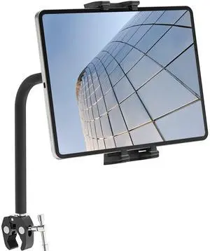 GDZN Treadmill Tablet Holder, 360 Adjustable Handlebar Tablet Mount for Spin Bike, Indoor Cycling, Gym Bicycle, Gooseneck iPad Mount Clamp Fit 4.7-13" iPad Pro/Air/Mini, iPhone, Galaxy