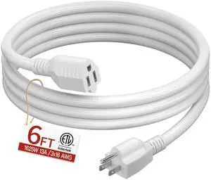 Features: This 6 FT power extension cord is made by Jplenty and features a style with material. It supports a voltage of 125 volts and an input current of 5 amps. The cable is White in color and is UL listed. It comes with a Male-to-Male connector and does not require batteries.