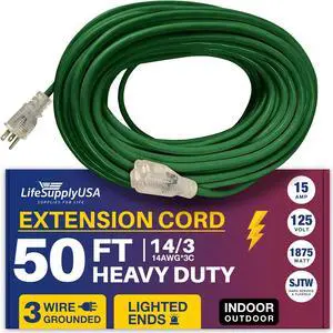 Features: This 25FT power extension cord is made by islewire and features a style with copper material. It supports a voltage of 125 volts and an input current of . The cable is Black in color and is UL listed. It comes with a Male-to-Female connector and does not require batteries.