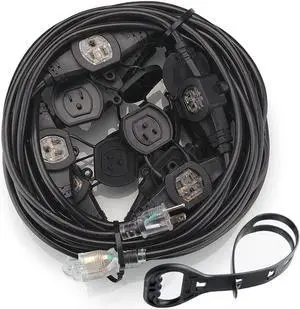 Features: This 50 FT Lighted power extension cord is made by huanchain and features a 12/3 Extension Cord style with vinyl material. It supports a voltage of 125 volts_of_alternating_current and an input current of . The cable is Yellow in color and is UL listed. It comes with a Male-to-Female connector and does not require batteries.