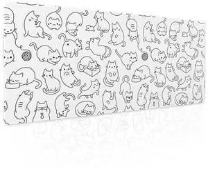 White Kawaii Cats Gaming Mouse Pad XL Cute Anime Kittens Japanese Extended Big Large Desk Mat Non-Slip Rubber Base Stitched Edge Long Keyboard Mousepad for PC Computer Laptop,31.5×11.8 Inches